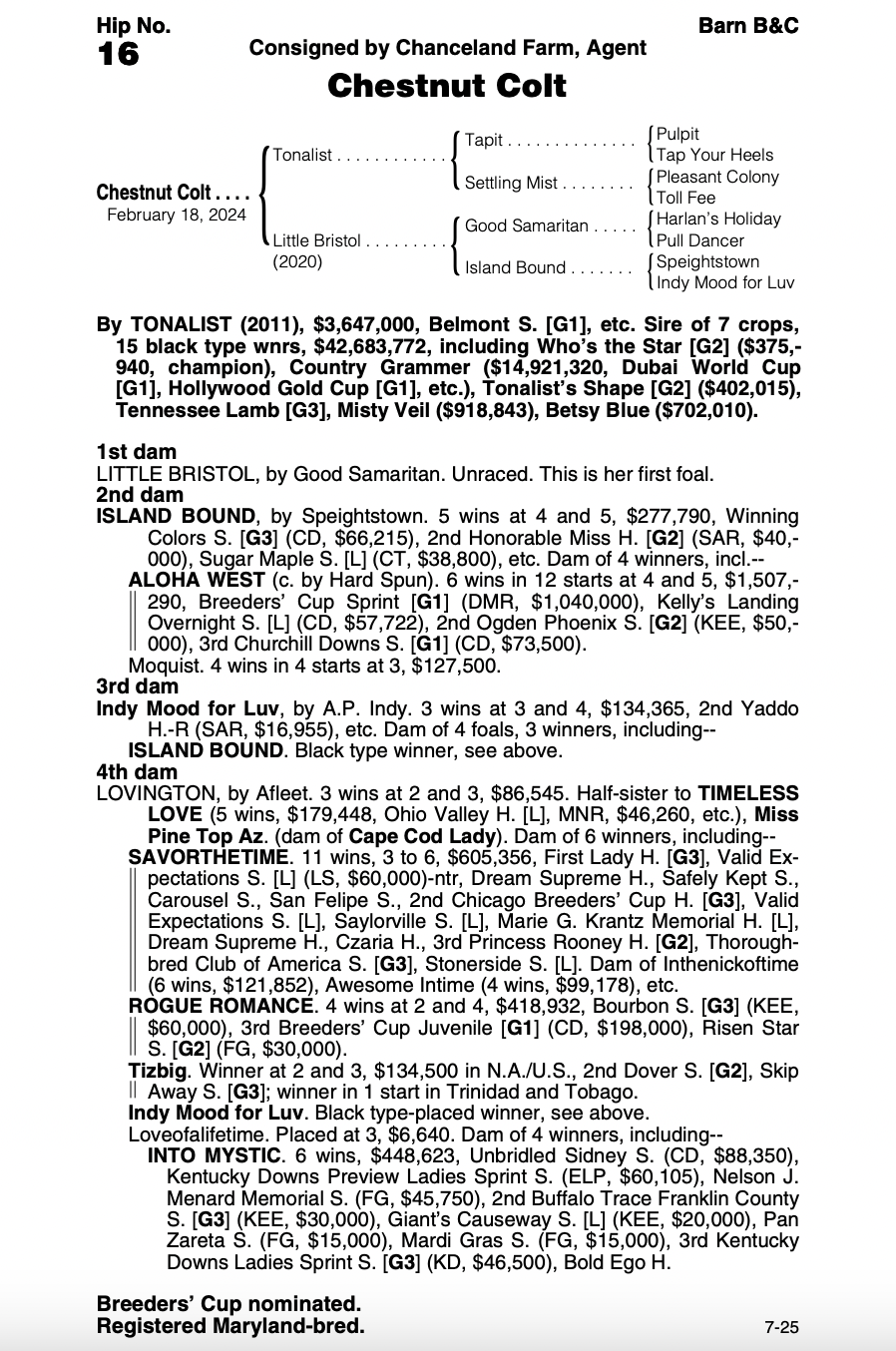 TONALIST-LITTLE BRISTOL - YEARLING